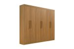 - Acabamento e Puxadores: Conta com acabamento acetinado e puxadores de madeira ou perfil puxador em alumínio (a depender da versão/lote).