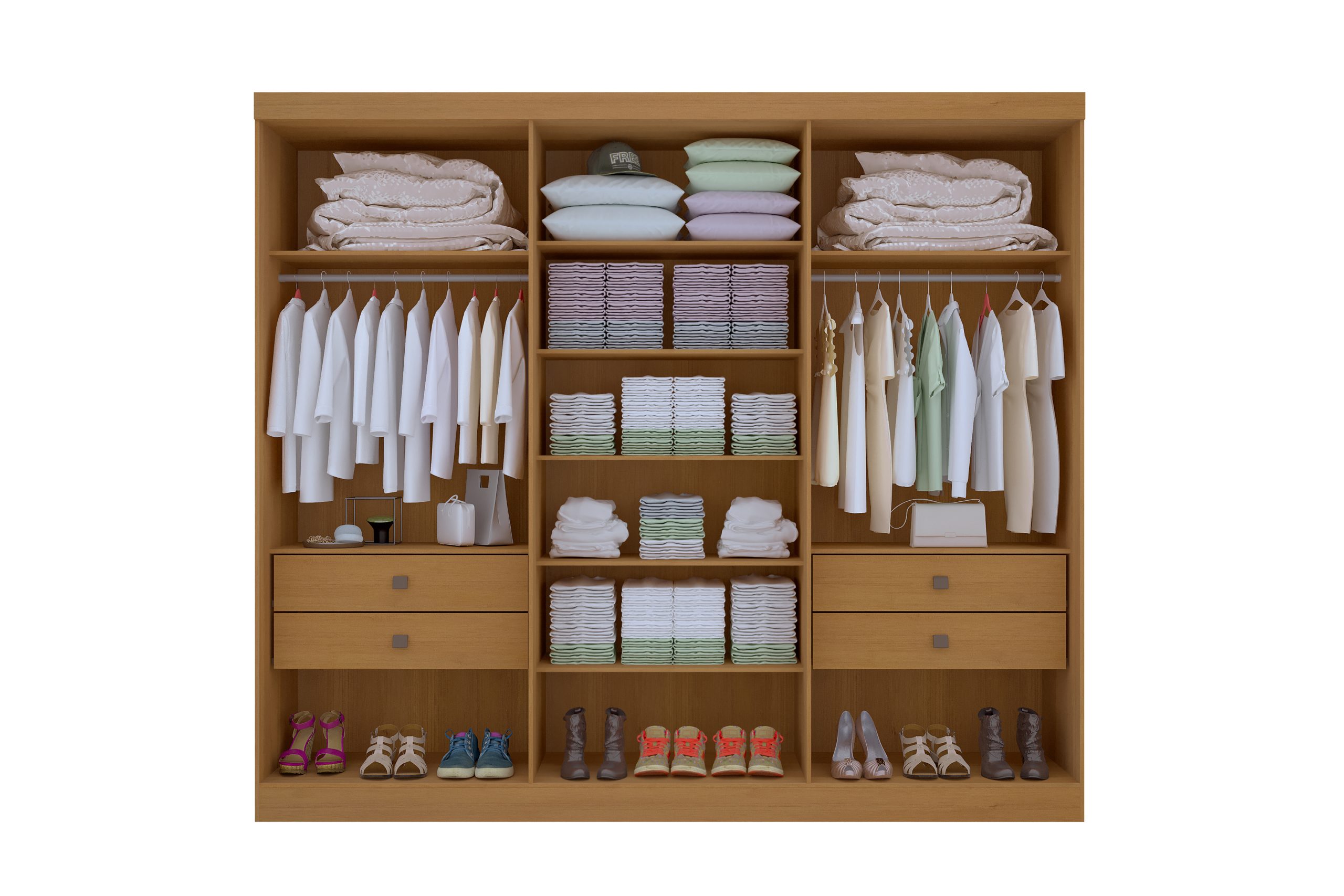 - Divisão Interna: O interior é bem dividido, com várias prateleiras, um maleiro espaçoso, e cabideiros/calceiros em alumínio com suportes metálicos resistentes. Algumas versões podem ter uma gaveta com chave para objetos de valor.